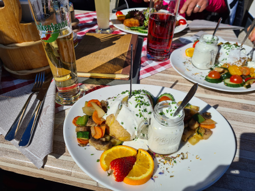 Dort konnten wir uns mit herrlich zubereitete Speisen stärken, wie Eachtepflblattlang mit Sauerkraut oder Gogl-Schmarrn usw.