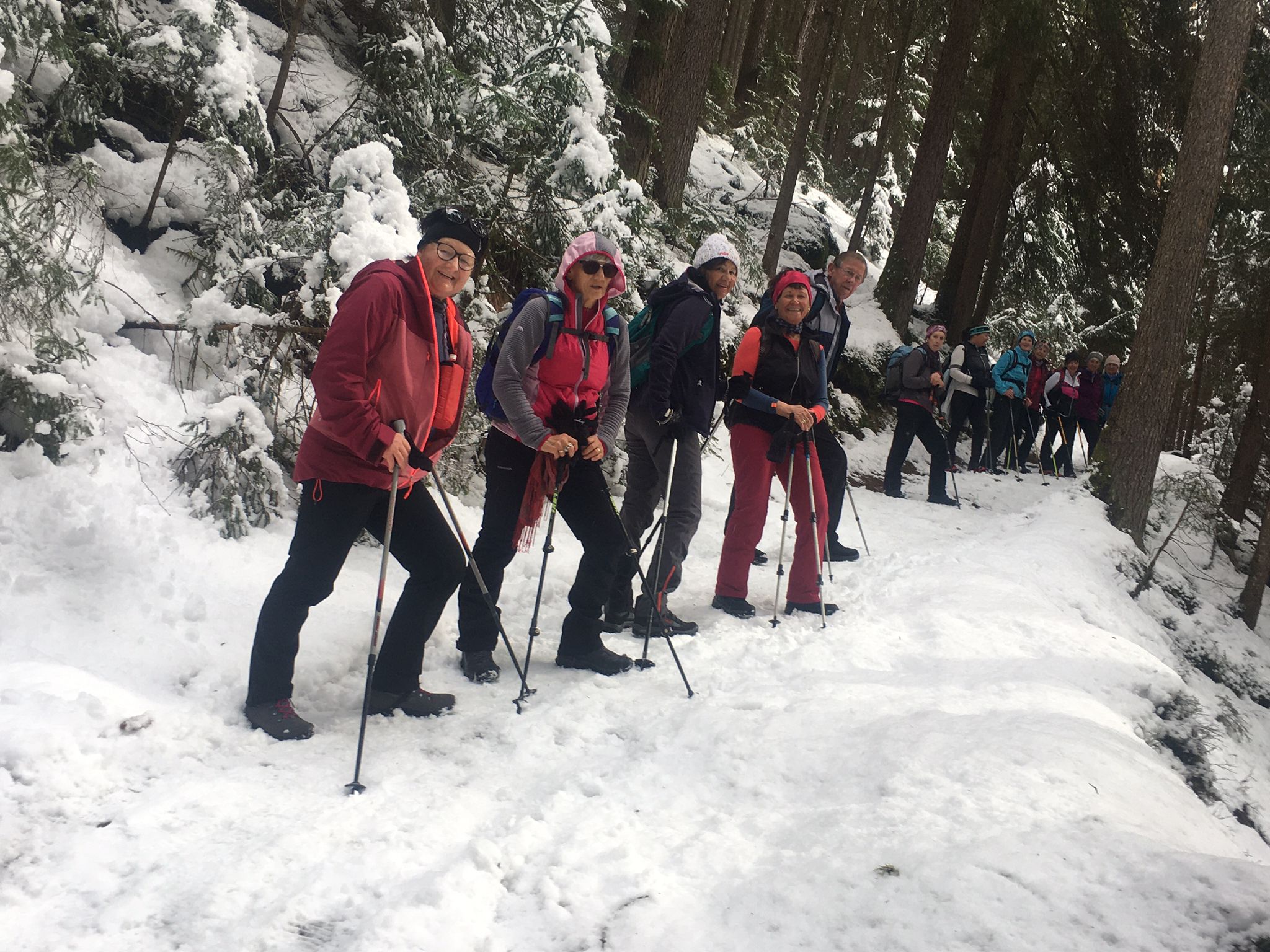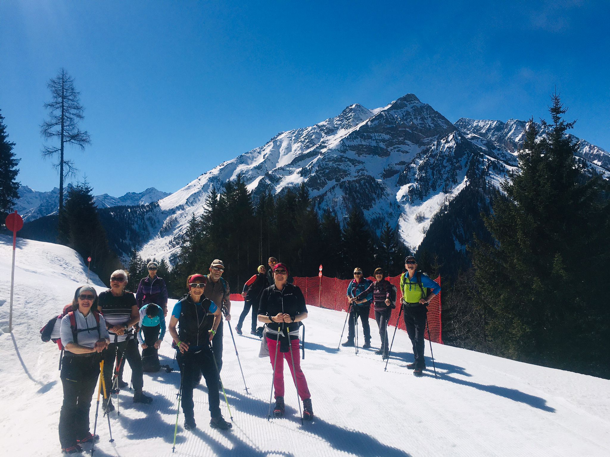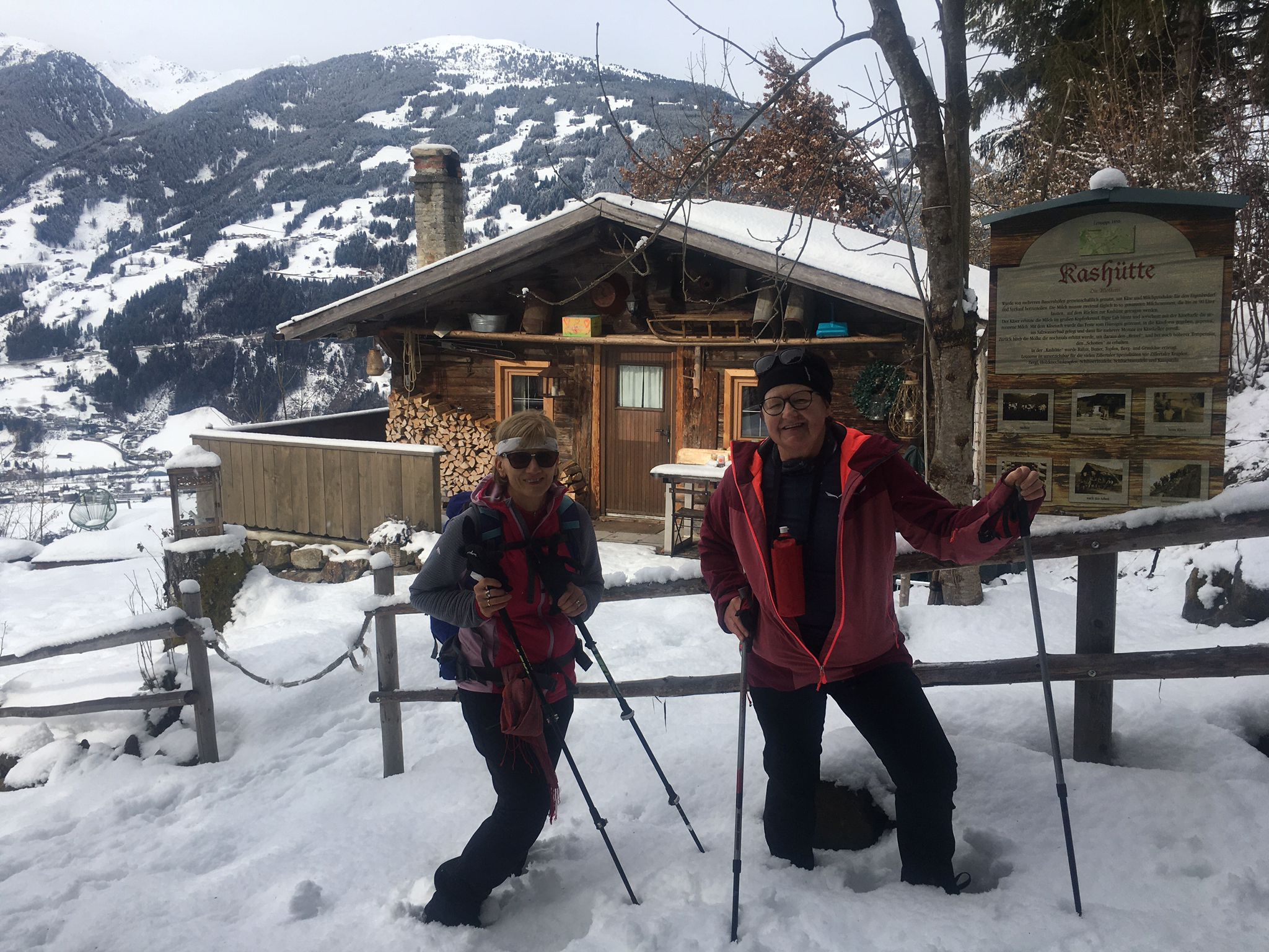 Das Gelungene an diesem Tag war noch, dass auch unsere Genusswandergruppe (16 Personen) an diesem Tag mit Wanderführer Walter unterwegs waren. Diese Gruppe fuhr mit der Penkenbahn ins Skigebiet von Mayrhofen und gingen über den Winterwanderweg von der Bergstation der Kombibahn zum Penkenjoch in Finkenberg. Gleichzeit trafen wir dort ein und konnten so die Einkehr in der Penkentenne gemeinsam genießen.